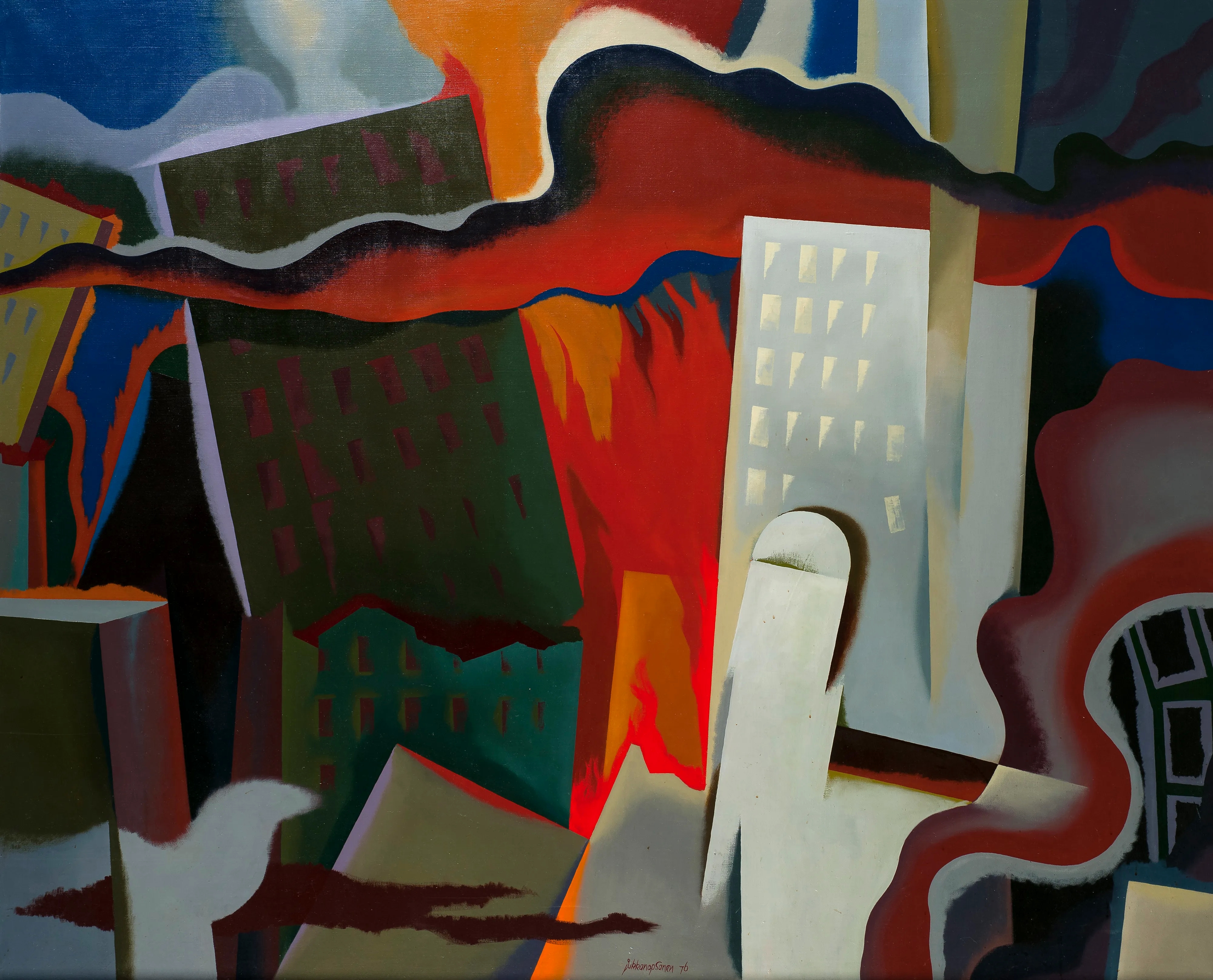 Kuvan tiedotMaalaus on vuodelta 1976, öljyväri kankaalle. / Oil on canvas, 1976.Kansallisgalleria / Finnish National Gallery Avainsanat: abstrakti, kaupunki, maanjäristys, mullistus, tulipalo, sortuminen, Kuvakoot: Esikatselukuva Pieni kuva Suuri kuva Alkuperäinen kuva Kuvaa on katsottu 487 kertaa |