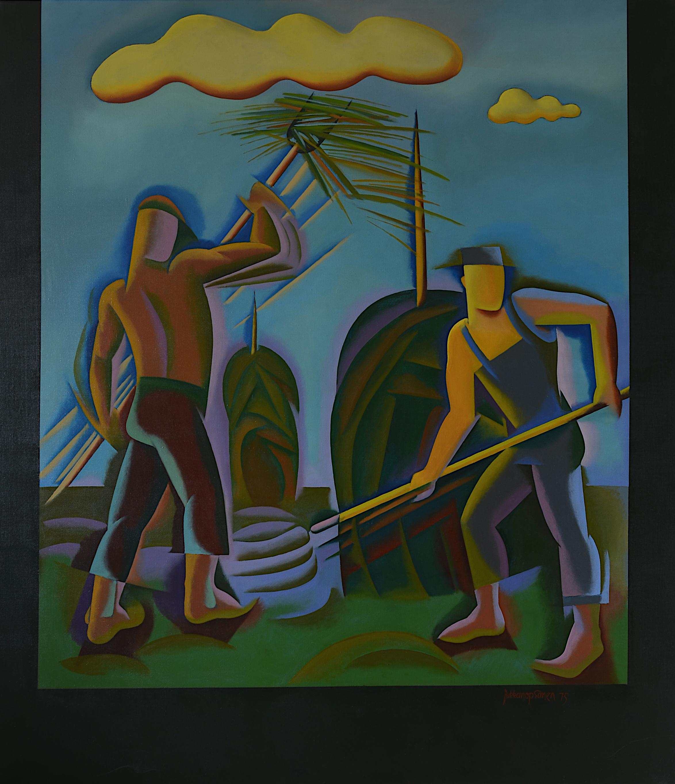 Kuvan tiedotÖljyvärimaalaus kankaalle, 150 x 130 cm, -1975.Suomen taiteilijain 82. näyttely. Avainsanat: Öljyvärimaalaus, figuuri, heinänteko, työ, pelto, mies, pilvi, Kuvakoot: Esikatselukuva Pieni kuva Suuri kuva Alkuperäinen kuva Kuvaa on katsottu 43 kertaa |